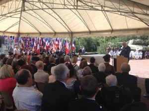 L’an dernier, avec émotion, nous avions célébré ensemble la mémoire des jeunes soldats venus du monde entier, de Pologne, du Canada, de l’Amérique, de Grande-Bretagne, de France nous délivrer de la barbarie, par leurs actes héroïques de courage et de sacrifice. Ils ont ici vaincu la peur, la tyrannie, afin que nous puissions naître et vivre libres sur notre terre.